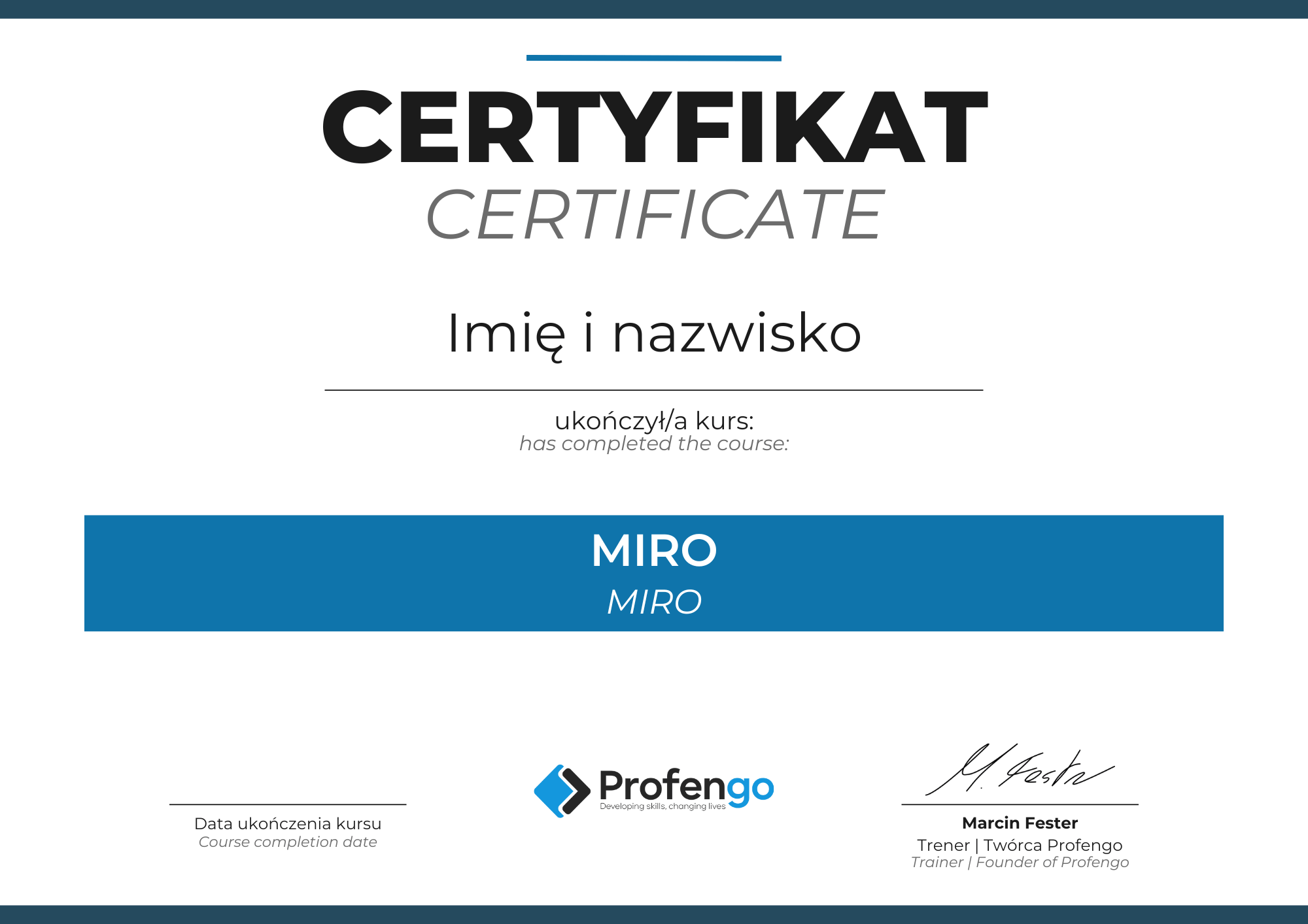 Zdobywasz dodatkowe umiejętności z zakresu zwinnego prowadzenia projektów z wykorzystaniem scruma oraz korzystania z Miro do pracy zespołowej.