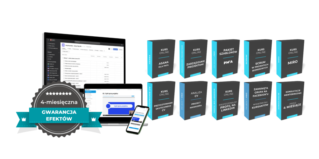Jestem na tyle pewny skuteczności działania PM Action Planu, że drugą część ceny pakietu zapłacisz dopiero, gdy zaczniesz zarządzać projektami. Jako efekt awansu w obecnej firmie lub uzyskując nową pracę.