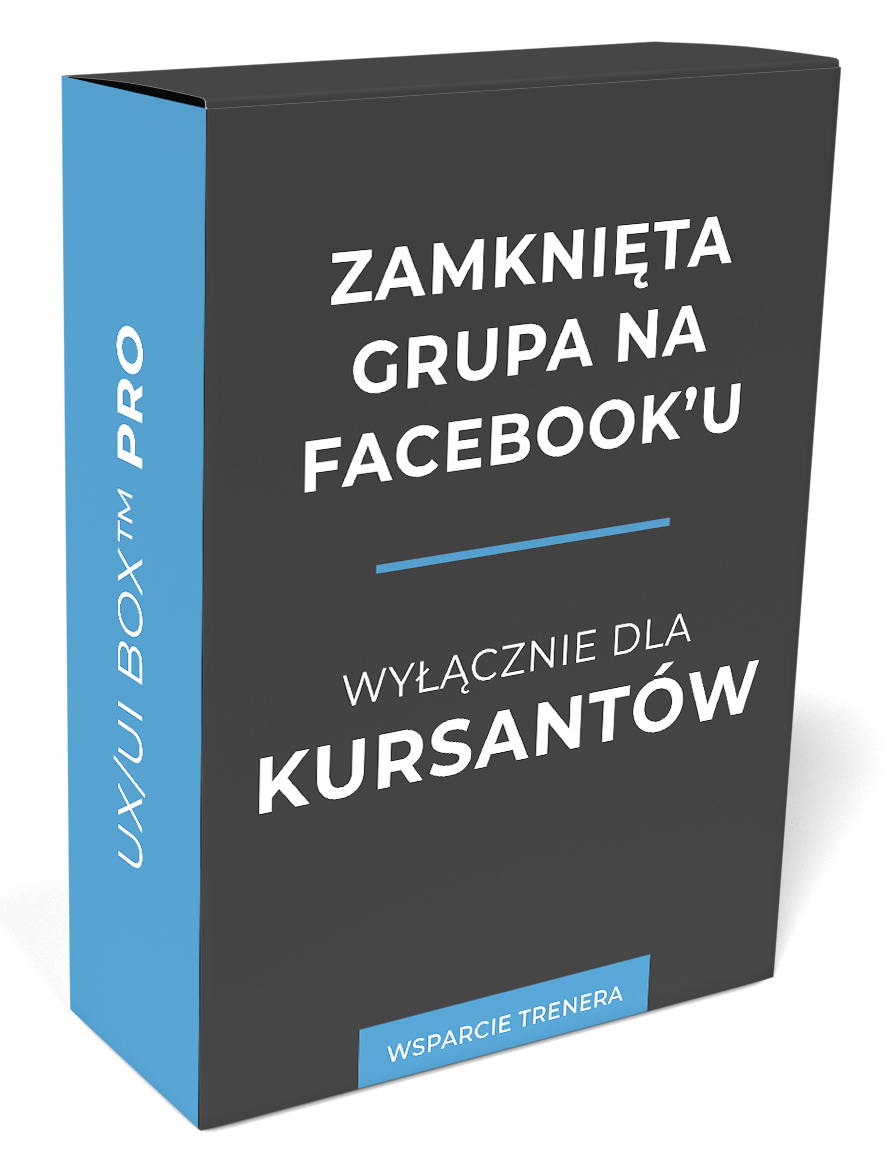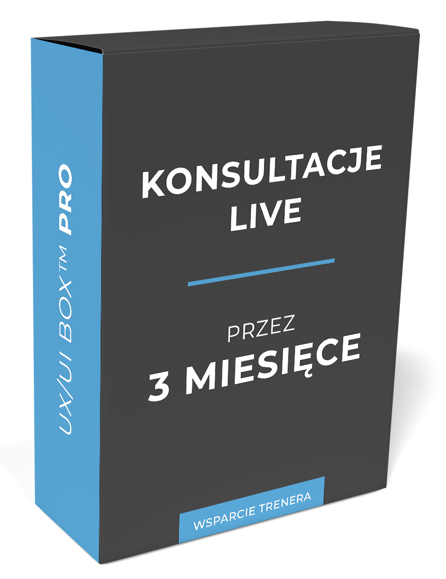 Pakiet wsparcia trenera w pakiecie UX/UI BOX™ PRO jest szerszy niż we wszystkich dostępnych kursach na żywo. Sam zakres obejmuje 4 kursy online, za które normalnie zapłaciłbyś kilka tysięcy złotych.