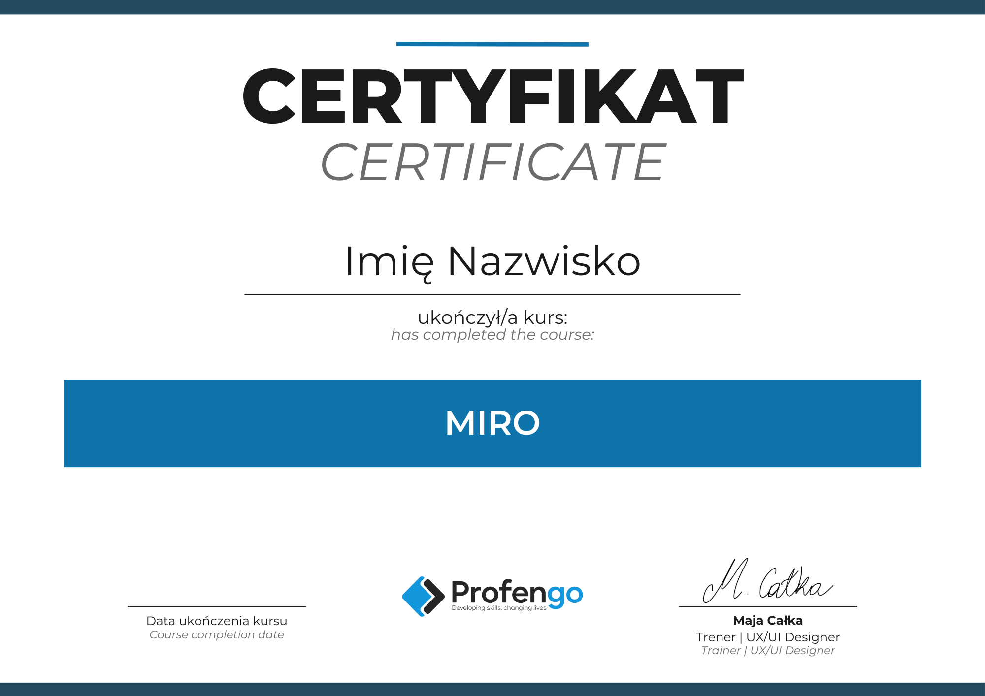 Certyfikat w dwóch językach